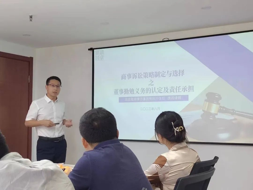 不积跬步,无以至千里;不积小流,无以成江海。敬卓律师始终秉承着敬畏法律之心,追求卓越之志,胸怀谦逊、包容、开放的态度,不断积累学习、不断进步。为了更好地推动律所专业化发展,提高律师专业化水平,2023年8月24日下午,敬卓所举办第九期敬卓讲坛。本次讲坛由敬卓所高级合伙人、执行主任唐宾律师做《商事诉讼策略制定与选择——董事勤勉义务的认定与责任承担》的主题分享,由李钰龄律师主持。
