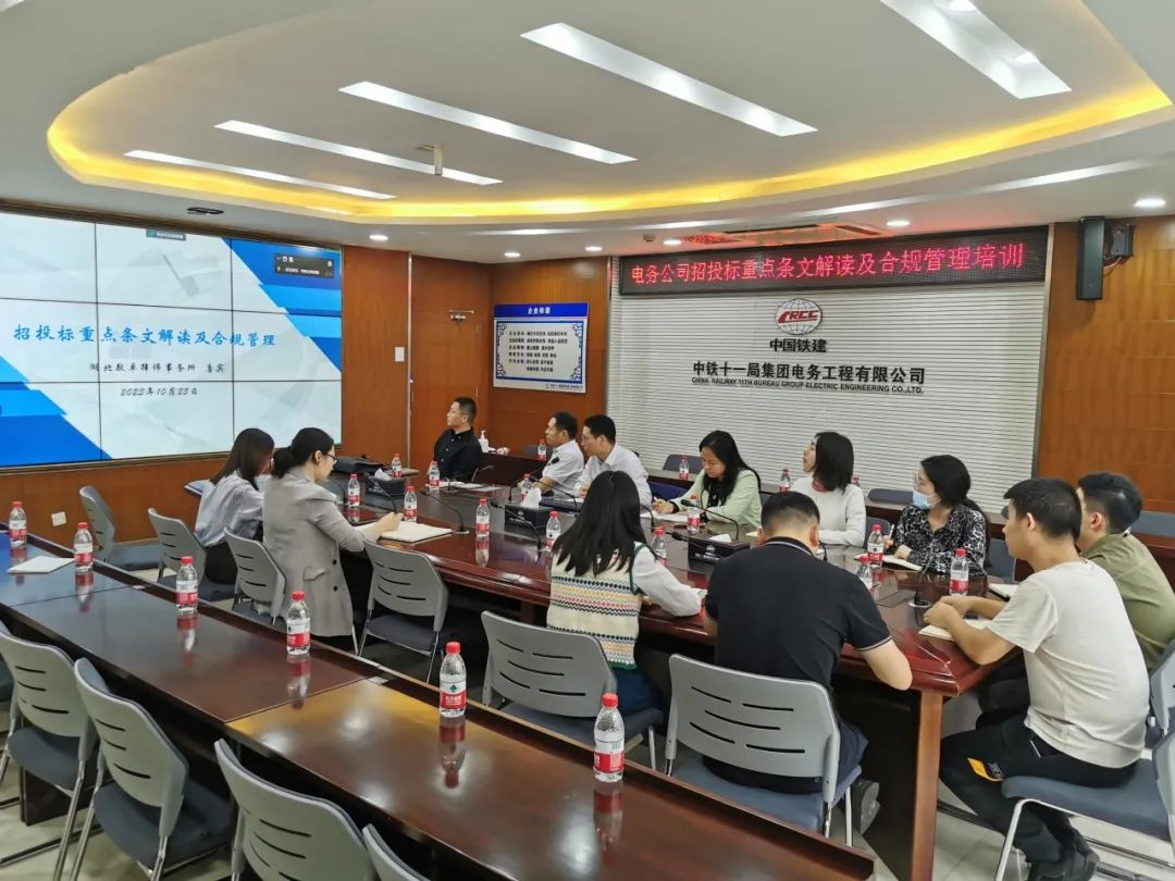 为落实央企合规要求,增强员工合规意识,特别是加强招标投标合规管理,中铁十一局集团电务工程有限公司邀请公司法律顾问我所执行主任唐宾律师,代表该公司在中铁十一局集团有限公司“法律合规周周讲”为集团及其下属各子公司开展招标投标合规管理专题培训。中铁十一局集团有限公司及其下属子公司百余人通过线上和线下方式参加了此次培训。