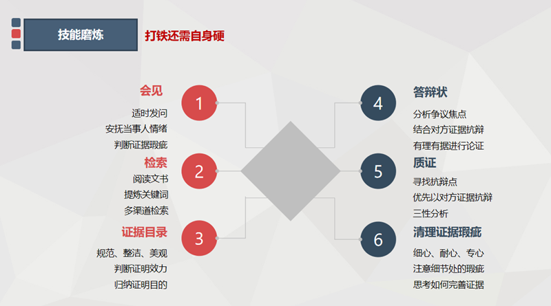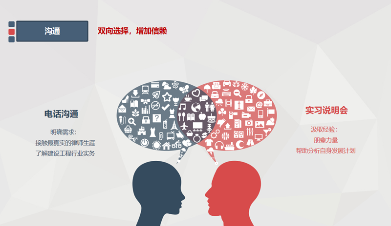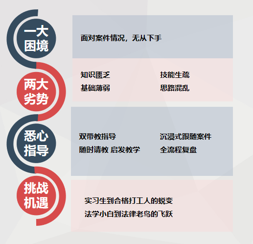 我随带教律师一同接见当事人时,也从中学到了不少,王律展现了他丰富的沟通技巧与专业的职业素养。面对情绪激动的当事人,他先以平和耐心的态度安抚当事人的情绪,给予当事人一定空间自由阐述案情。而当我还在梳理案情的时候,王律已经敏锐发觉了当事人叙述中模糊疑点,通过多次提问还原基本情况,确定关键突破口为诉讼时效,并以此为核心向当事人推荐了重新确认债权的方案。