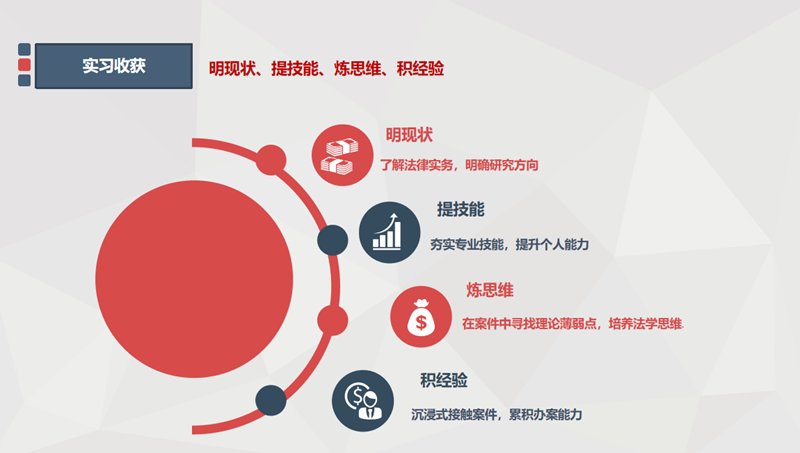 在实习中还有不少工作,例如制作证据目录、提交质证意见等,这都是一名专业优质的律师应当具备的技能,在一次次日常任务的培养下,我渐渐会有得心应手的感觉,切实体会到了真实的律师生活。