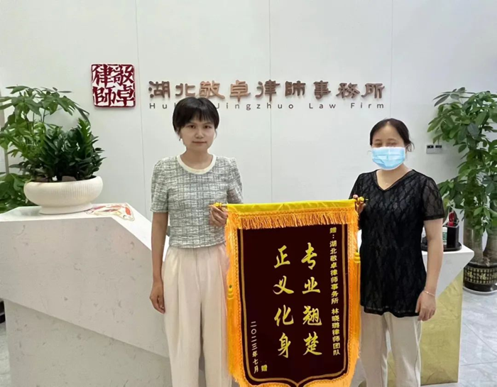 (当事人家属将“专业翘楚,正义化身”的锦旗赠与林晓璐律师)